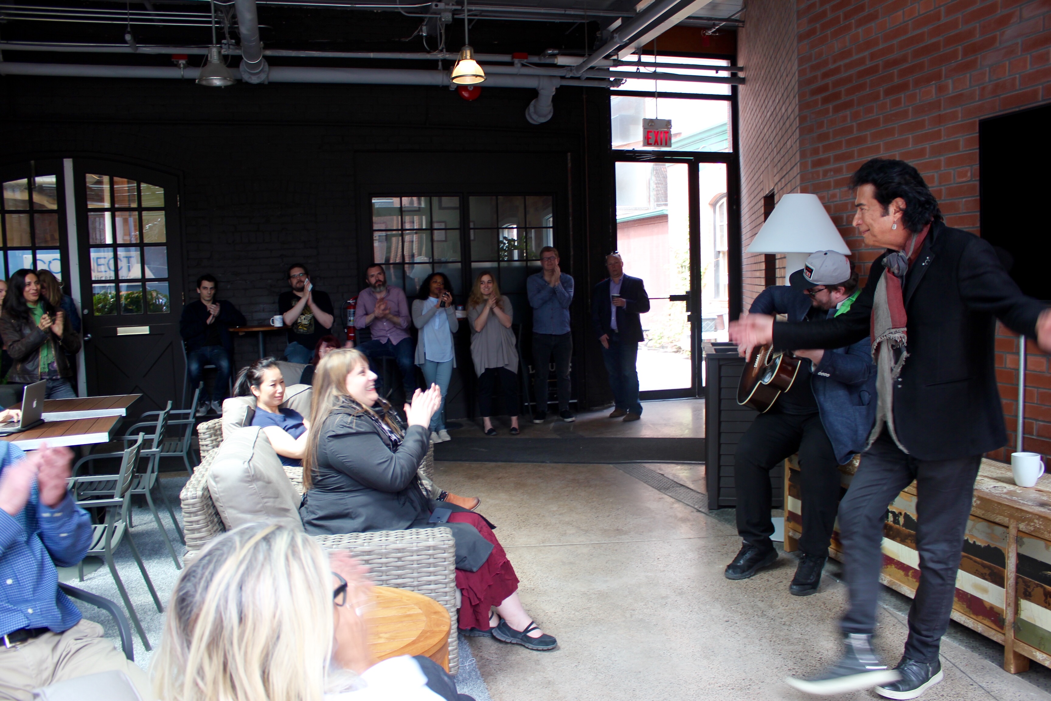 On Tuesday, legendary singer/songwriter Andy Kim paid a visit to the Music Canada courtyard to perform an acoustic set for staff and Liberty Village businesses and residents. Kim performed his iconic hits “How’d We Ever Get This Way,” “Sugar, Sugar,” and “Rock Me Gently,” and provided personal anecdotes from his extensive career.